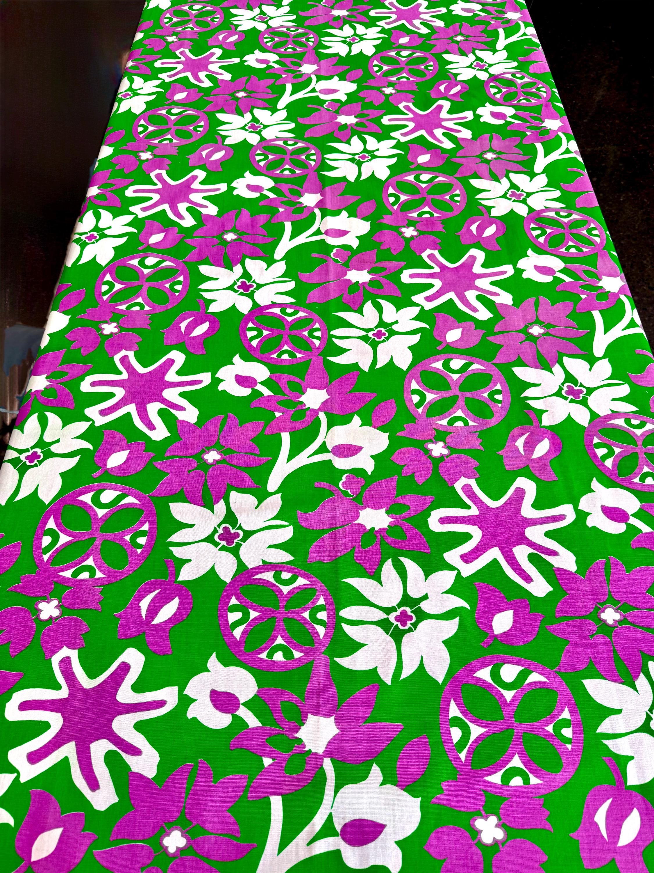 Wild and crazy medium to heavy weight broadcloth floral fabric brought straight to you from the 1960s.