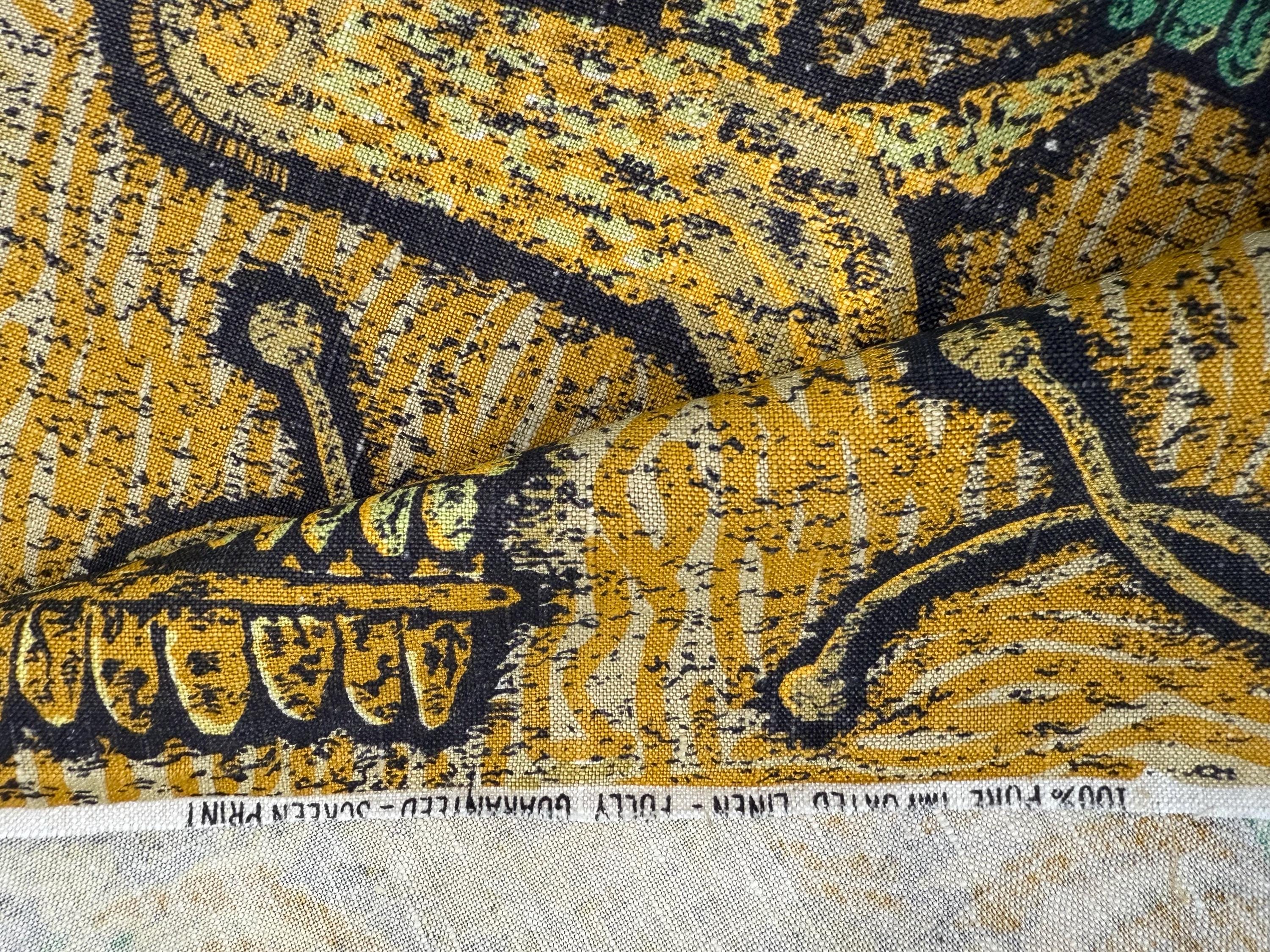 A Spectacular heavy weight linen textile that could easily carry a room for its sheer artistry.
