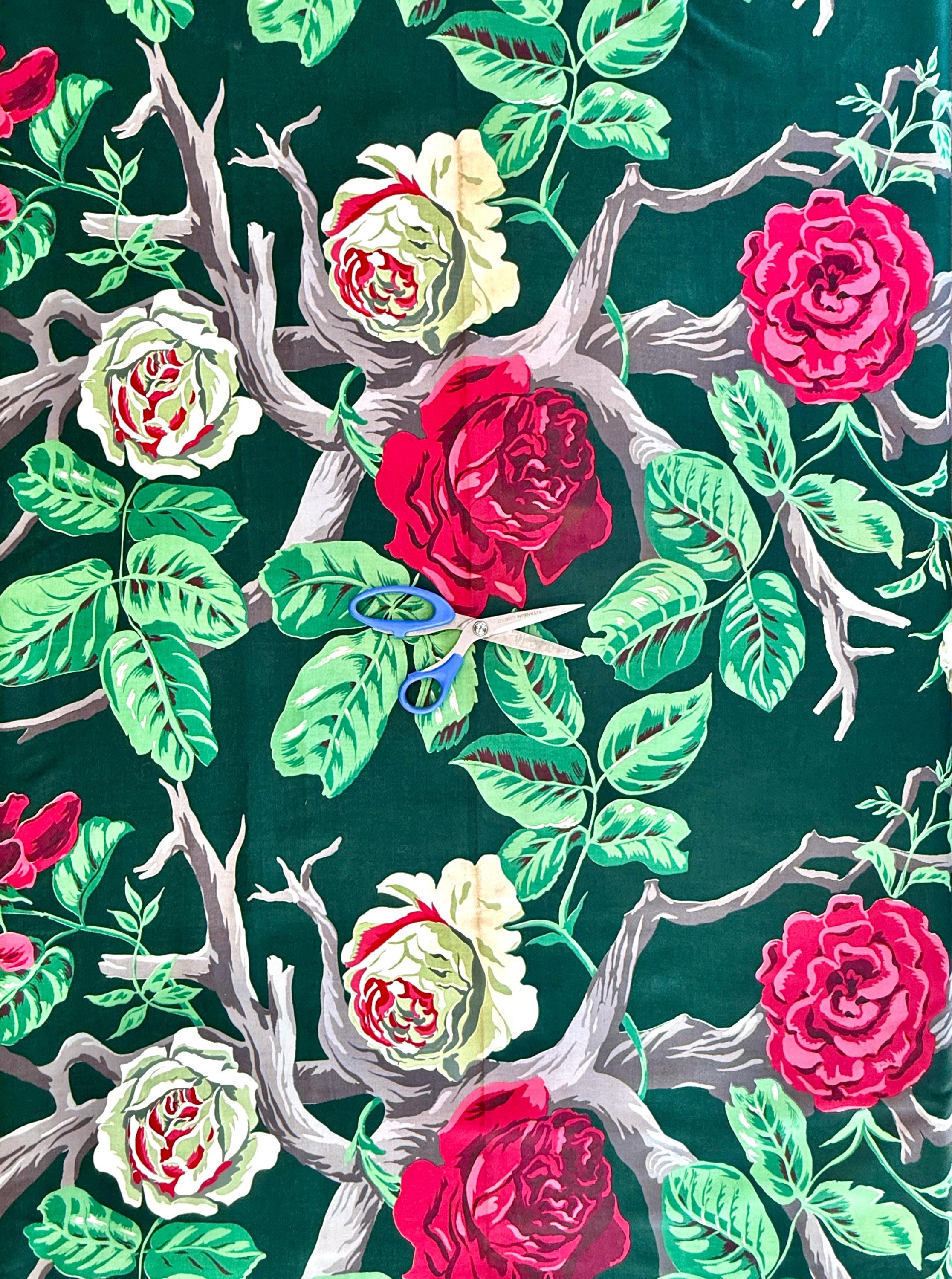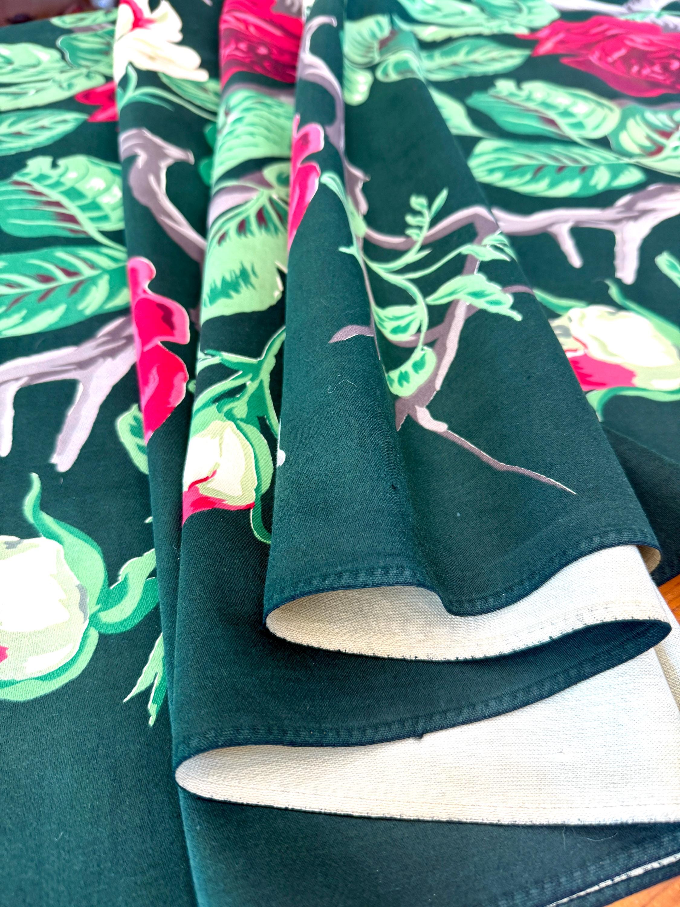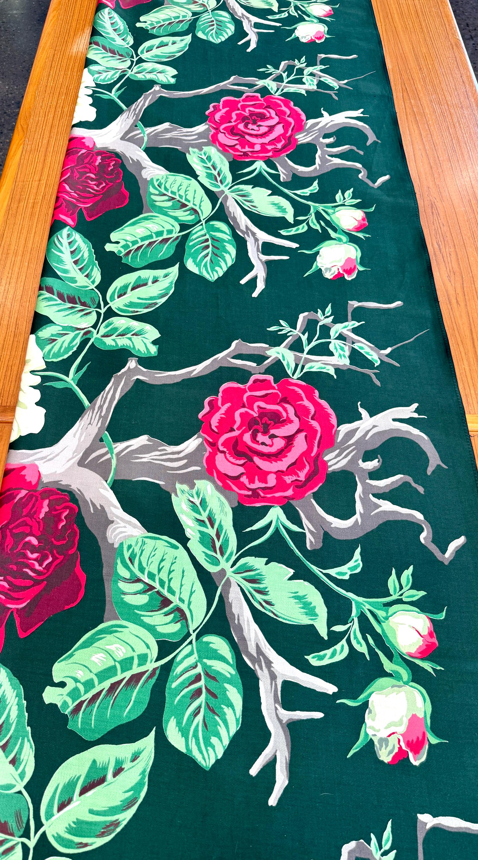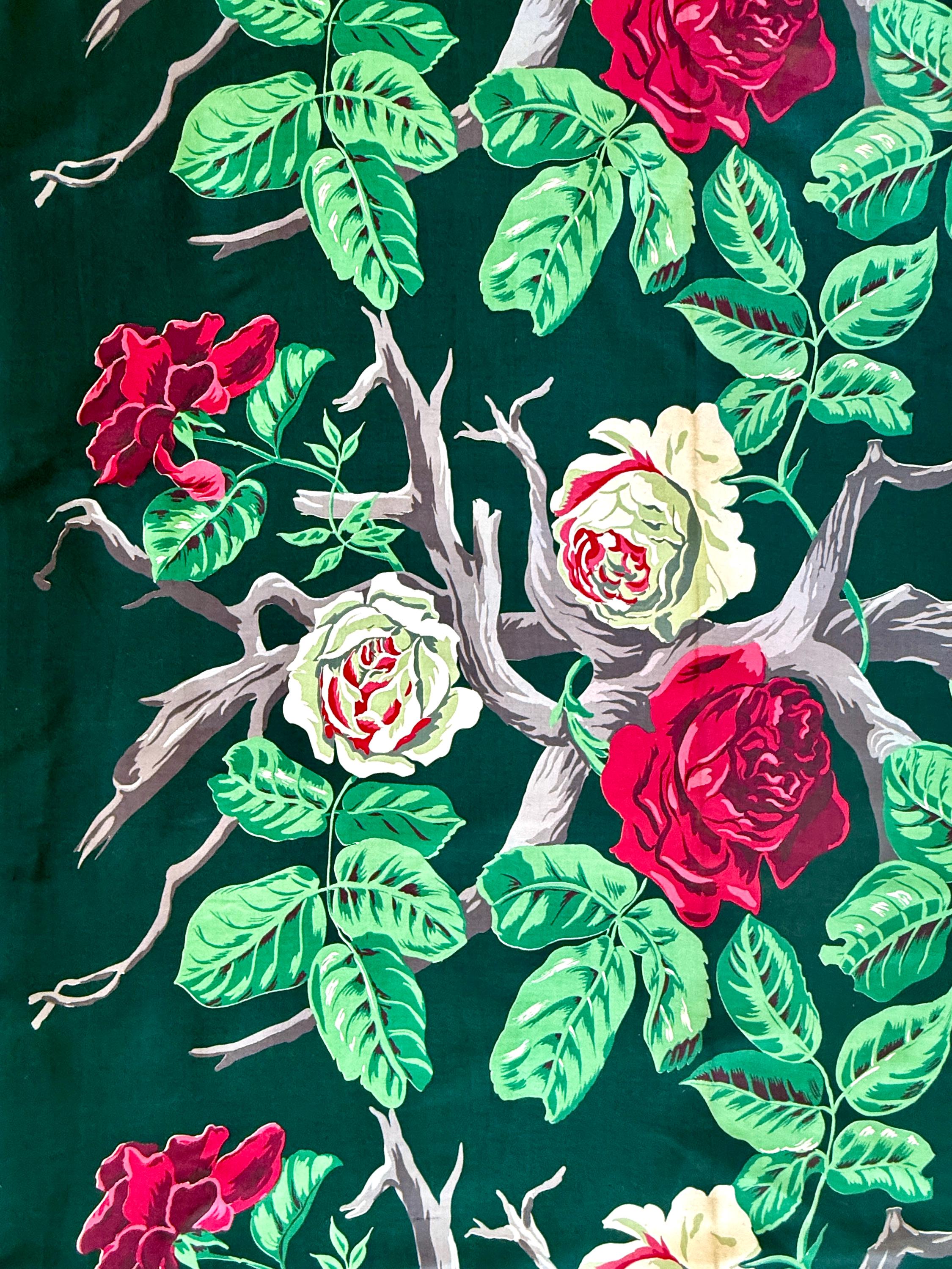 A dark pine green ground provides the perfect back drop to display this fab floral masterpiece.