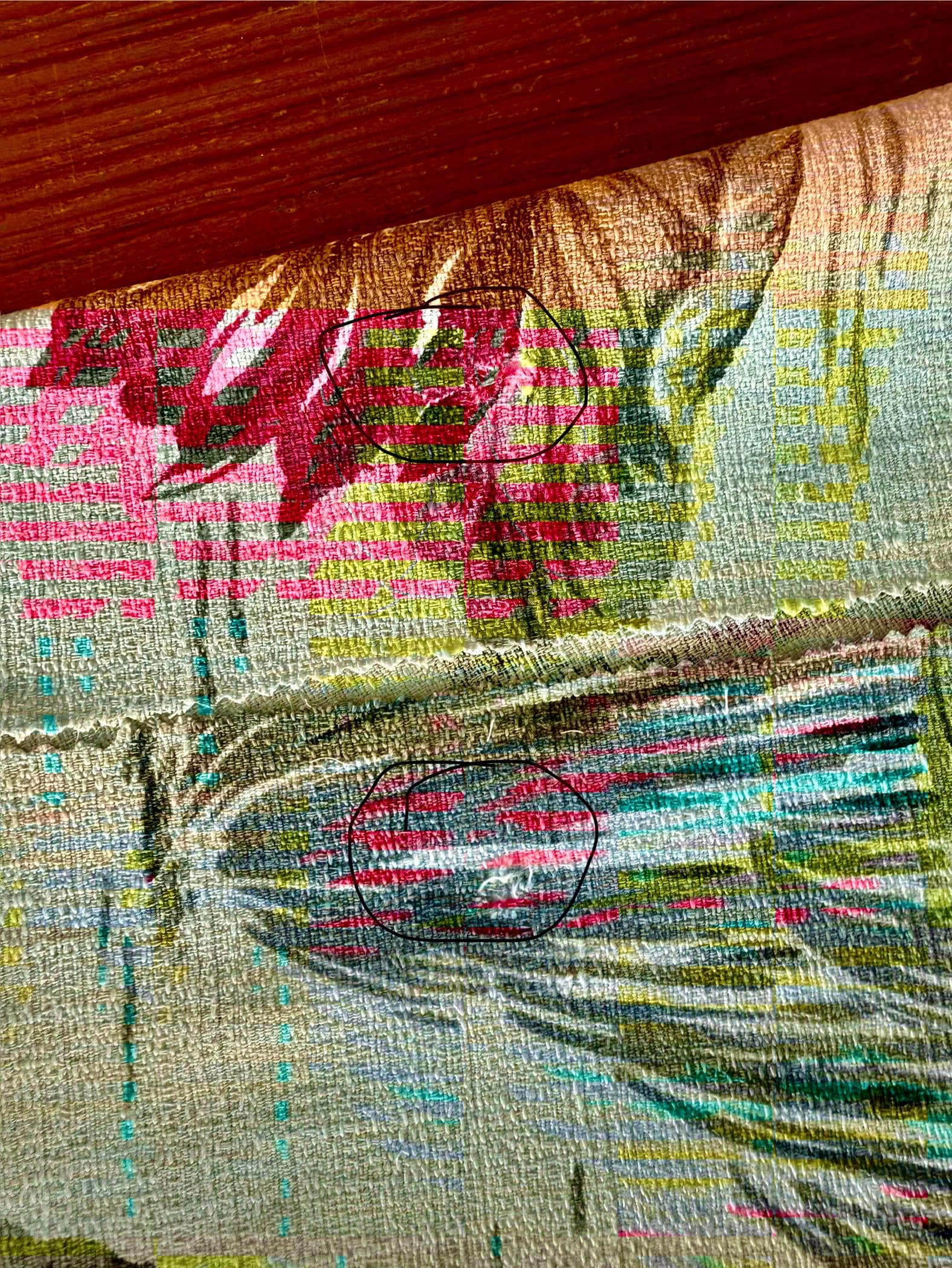 Panel #2.....very good condition, with small area of red dye bleed on 1 flower. Factory Flaw?