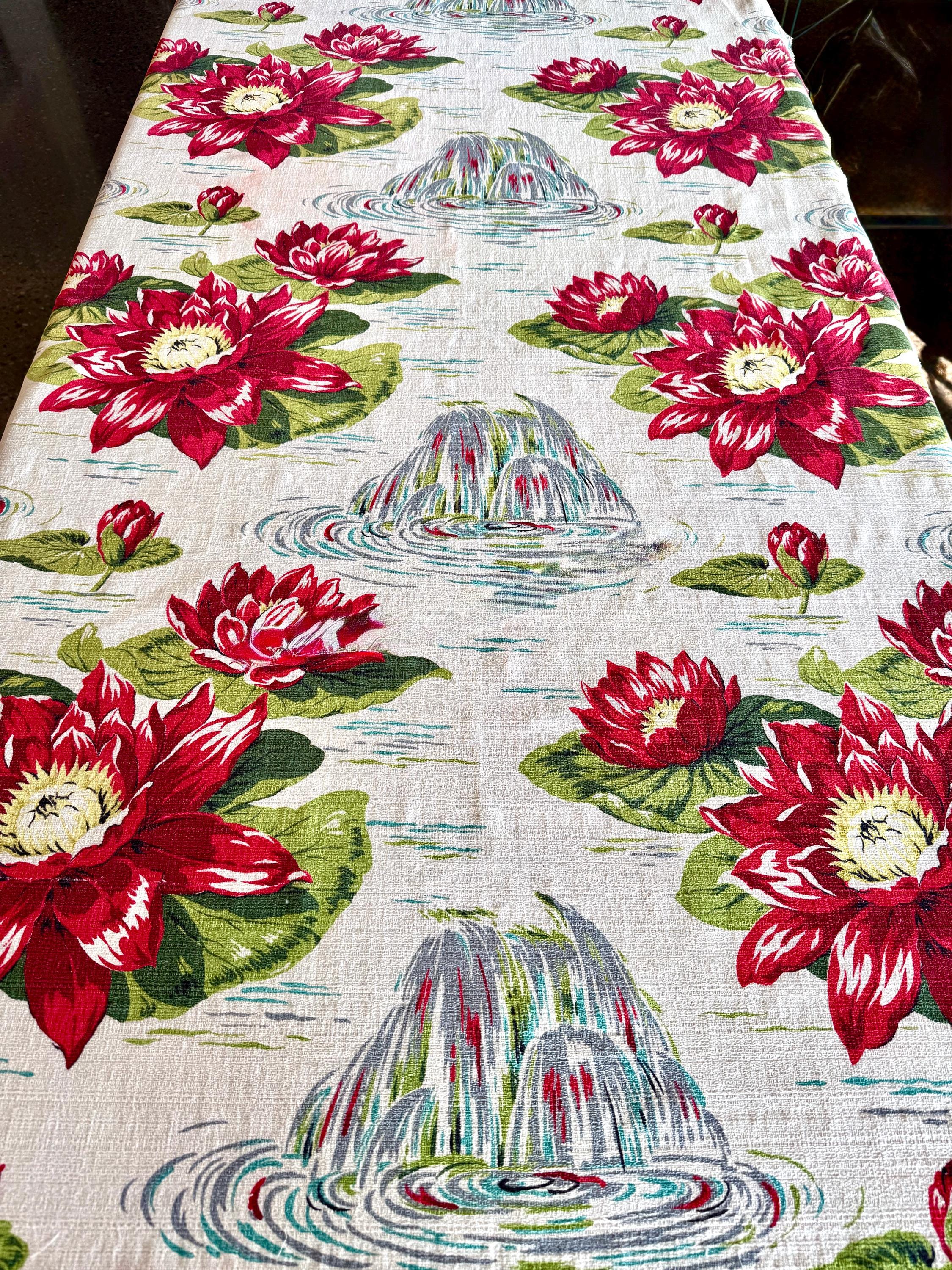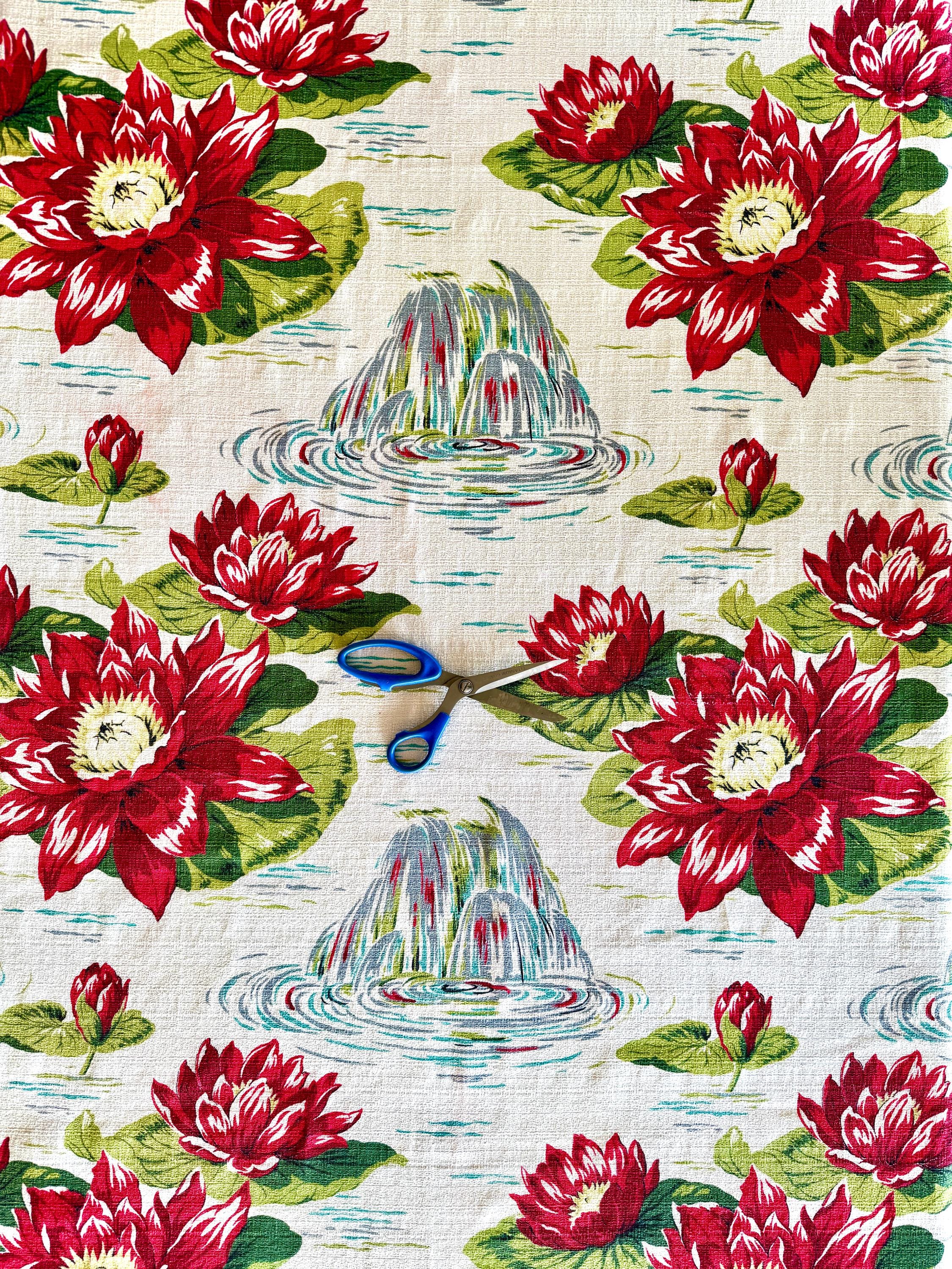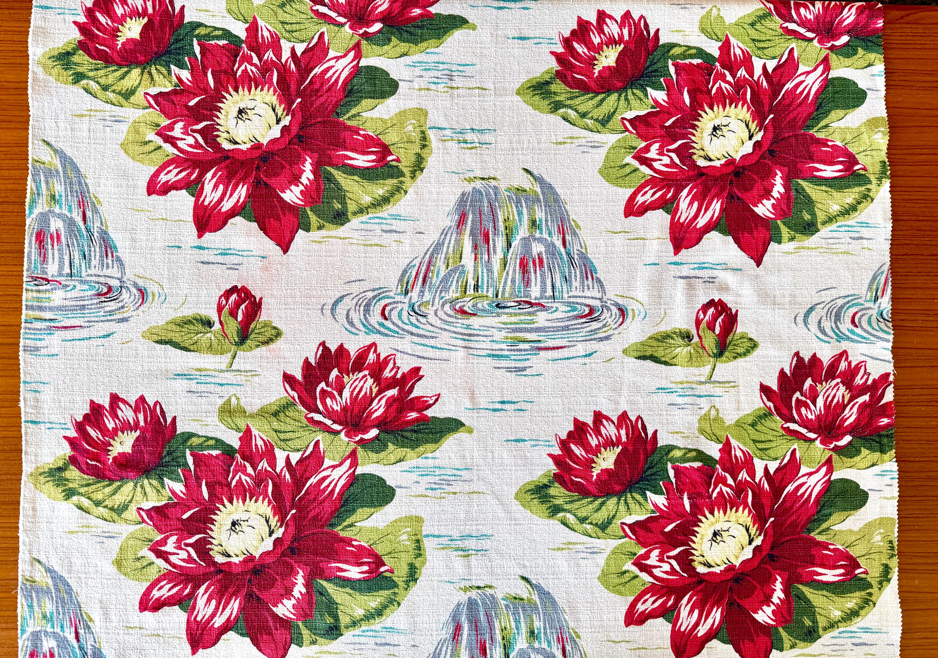 Medium to heavy weight floral cotton barkcloth from the fabulous 1940-50s.