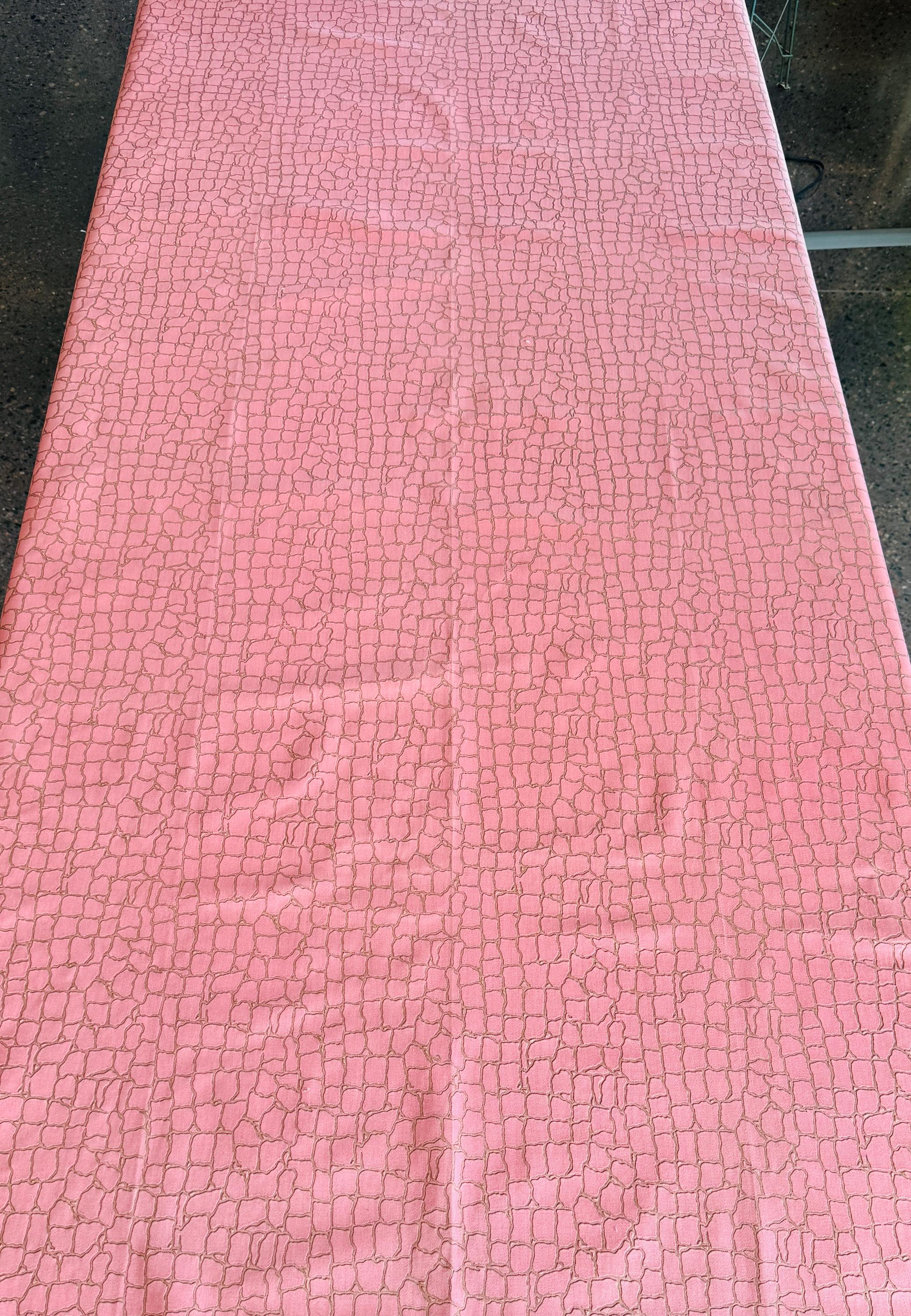 It features a unique haphazard geometric cobblestone design with brown/taupe outlines that fit the mid century modern abstraction so popular in the 1950s-60s.