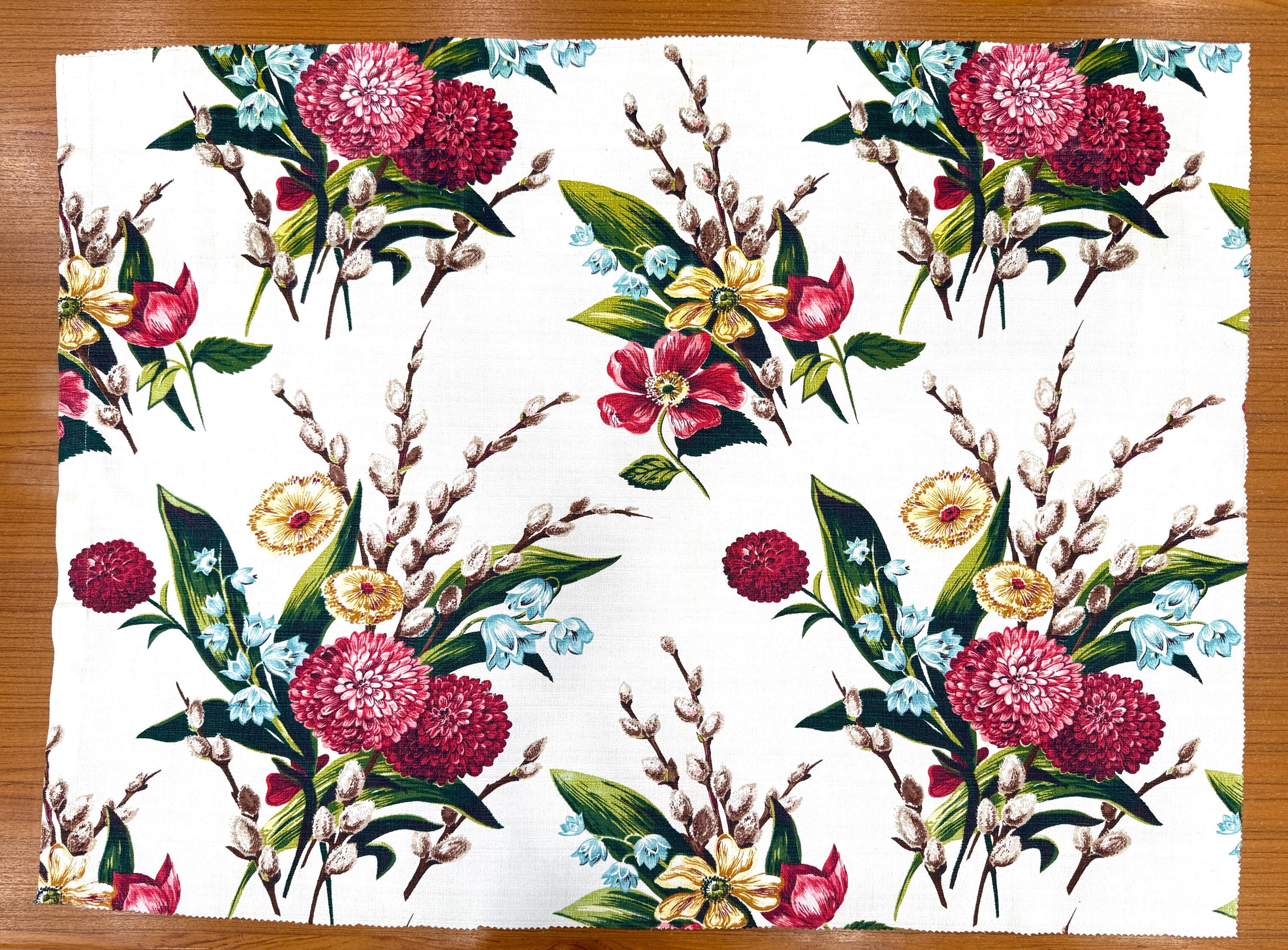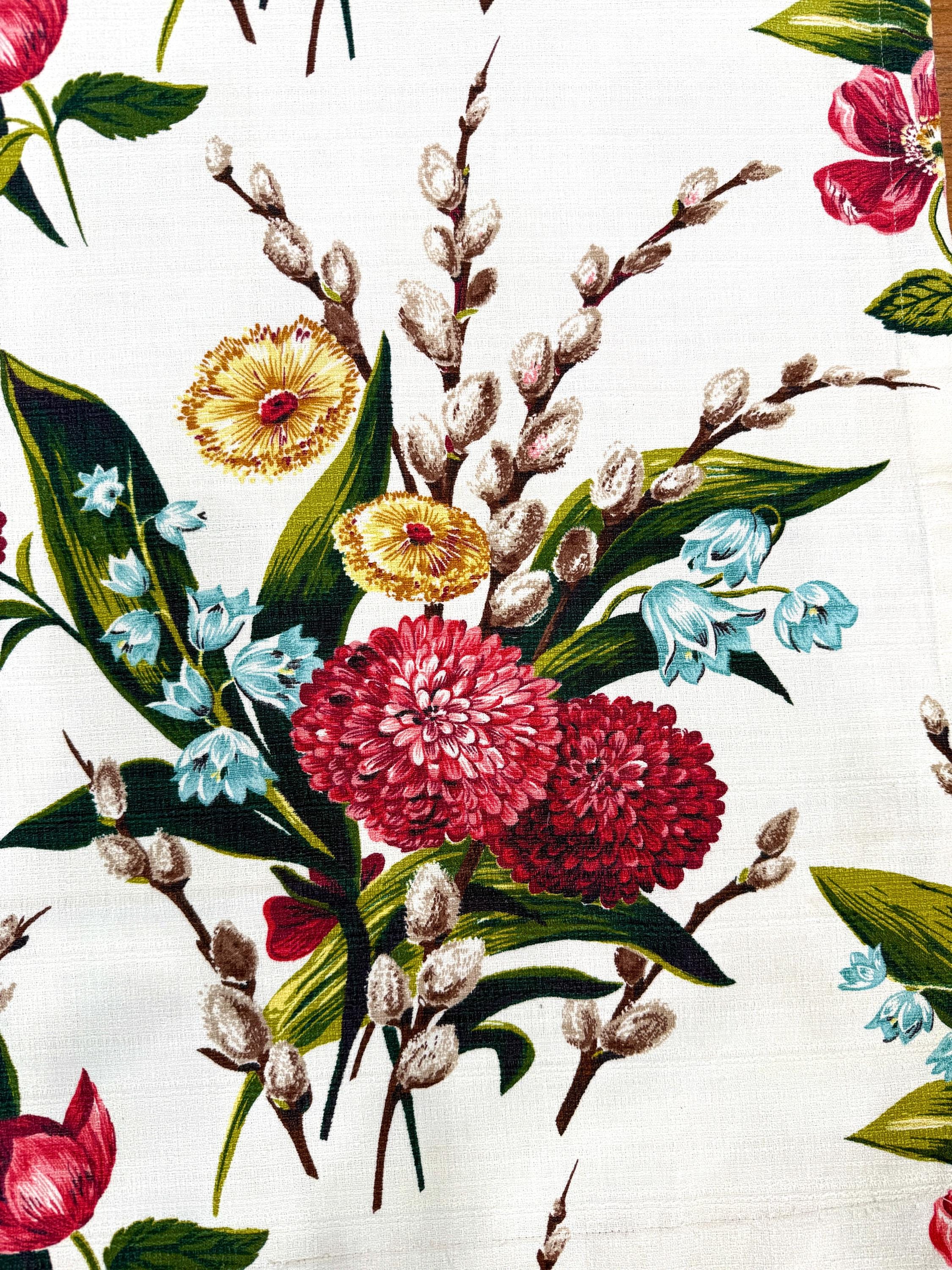A spectacular cotton floral barkcloth from the glamorous Hollywood Regency Era of the 1940s.