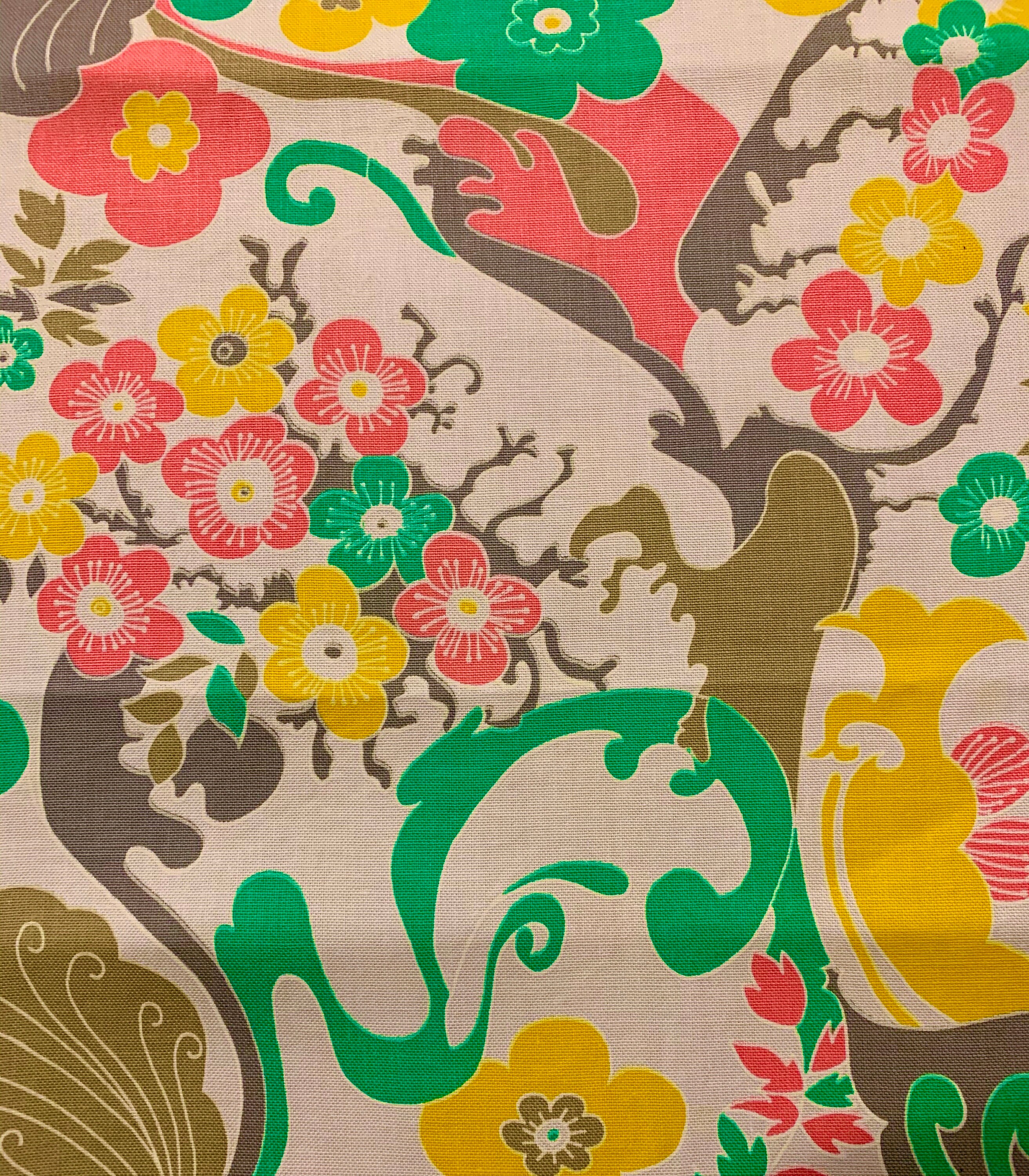 A textile so groovy that no self respecting hippie could ignore this fabric with its cool floral design and a psychedelic op art vibe.